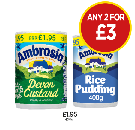 Ambrosia Devon Custard, Rice Pudding - Any 2 for £3 at Budgens