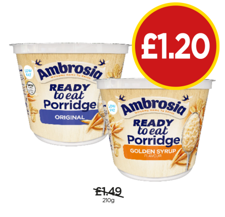 Ambrosia Porridge Original, Golden Syrup - Now Only £1.20 at Budgens