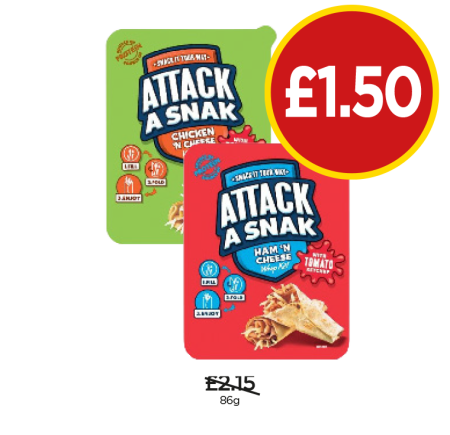 Attack A Snak Chicken 'N' Cheese, Ham 'N' Cheese - Now Only £1.50 at Budgens