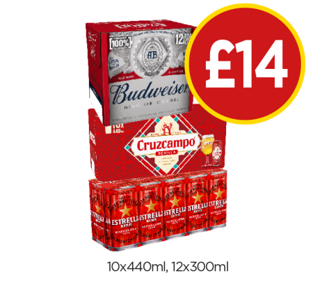 Budweiser, Cruzcampo, Estrella - Now Only £14 at Budgens