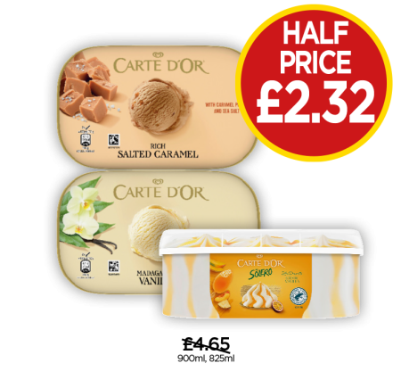 Carte D'Or Salted Caramel, Vanilla, Solero - Now Only Half Price £2.32 at Budgens