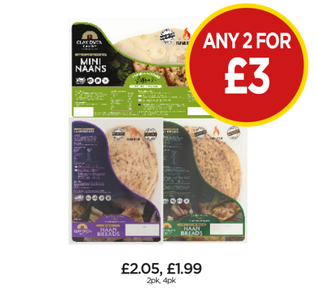 Clay Oven Mini Naans, Plain, Garlic & Coriannder - Any 2 for £3 at Budgens