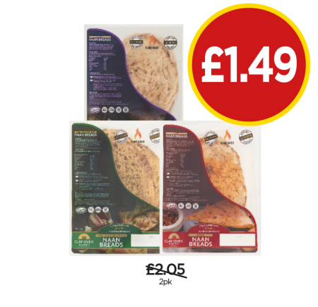 Clay Oven Naan Breads Plain, Spicy, Garlic & Coriander - Now Only £1.49 at Budgens