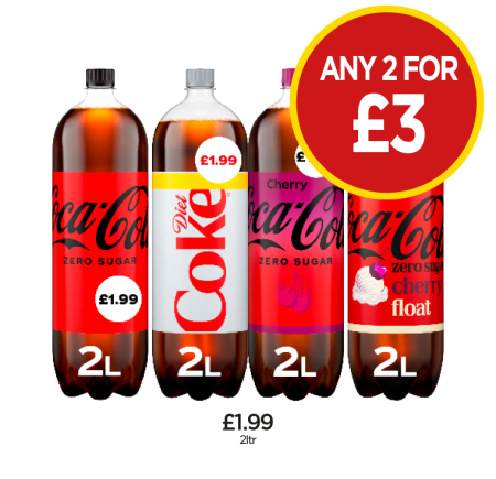 Coca Cola Zero, Diet Coke, Cherry, Cherry Float - Any 2 for £3 at Budgens