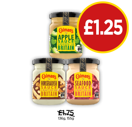 Colman's Apple Sauce, Horseradish, Seafood - Now Only £1.25 at Budgens