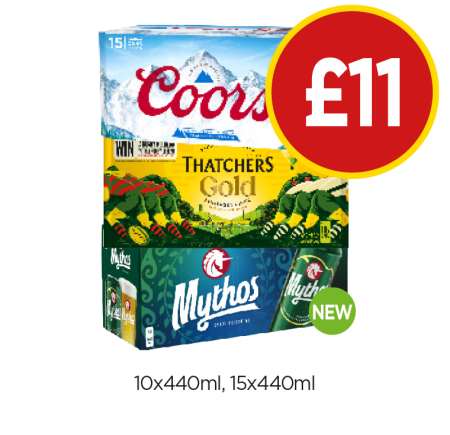 Coors, Thatchers Gold, Mythos - Now Only £11 at Budgens