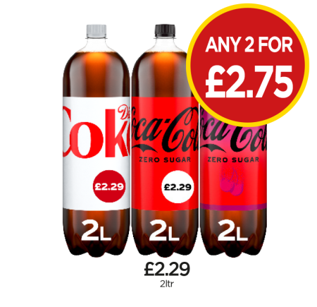Diet Coke, Coke Zero, Cherry - Any 2 for £2.75 at Budgens