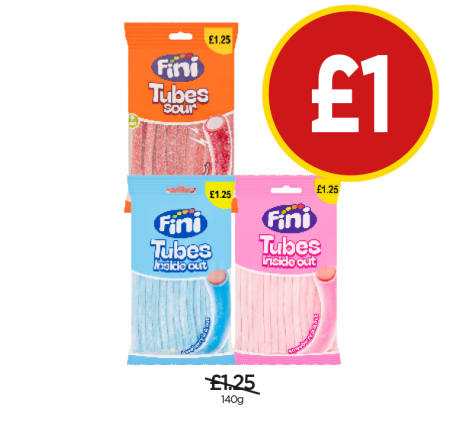 Fini Tubes Sour, Inside Out Raspberry, Strawberry - Now Only £1 at Budgens