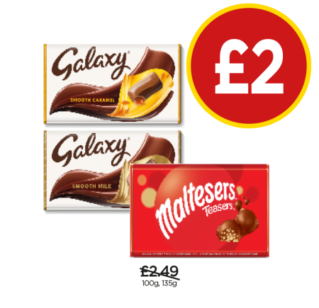 Galaxy Smooth Caramel, Milk, Maltesers - Now Only £2 at Budgens
