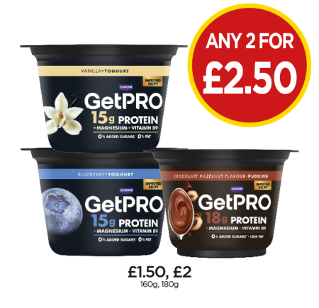 GetPro Yoghurt Vanilla, Blueberry, Chocolate - Any 2 for £2.50 at Budgens