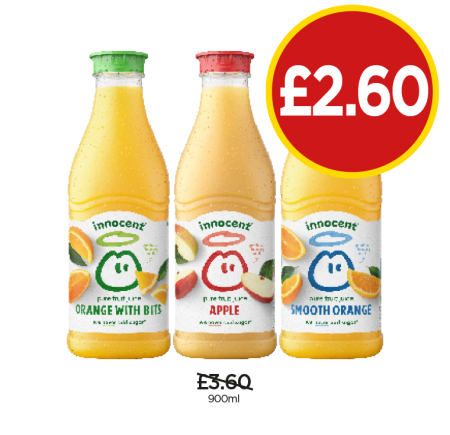 Innocent Orange With Bits, Smooth, Apple - Now Only £2.60 at Budgens