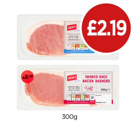 Jack's Back Bacon Rashers Smoked, Unsmoked - Now Only £2.19 at Budgens