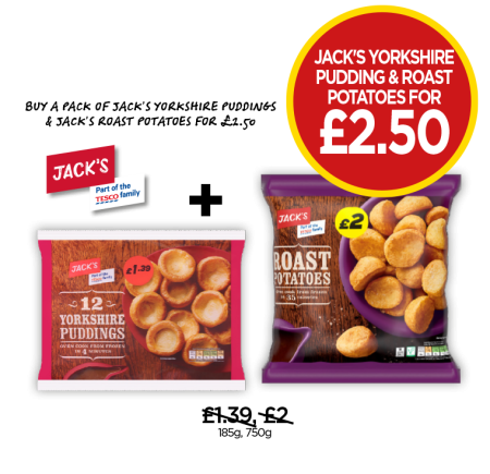 Jack's Yorkshire Puddings, Roast Potatoes - Buy A Pack Of Jack's Yorkshire Puddings & Jack's Roast Potatoes for £2.50 at Budgens