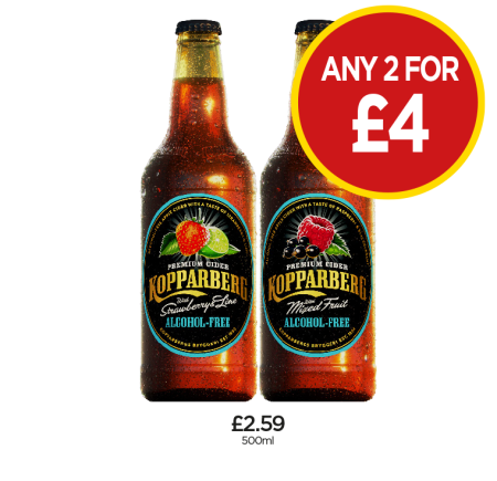 Kopparberg Strawberry & Lime, Mixed Fruit Alcohol-Free - Any 2 for £4 at Budgens