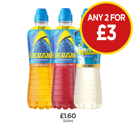 Lucozade Sport Orange, Raspberry, Ice Kick - Any 2 for £3 at Budgens
