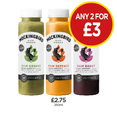 Mockingbird Raw Greens, Defence, Boost - Any 2 for £3 at Budgens