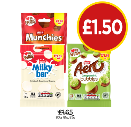 Munchies, Milkybar, Aero Peppermint Bubbles - Now Only £1.50 at Budgens