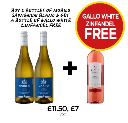 Nobilo Sauvignon Blanc, Gallo White Zinfandel - Buy 2 Bottles Of Nobilo & Get Gallo FREE at Budgens