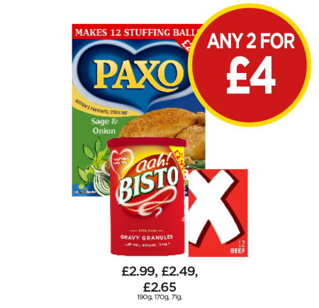 Paxo, Aah Bisto, OXO Beef - Any 2 for £4 at Budgens