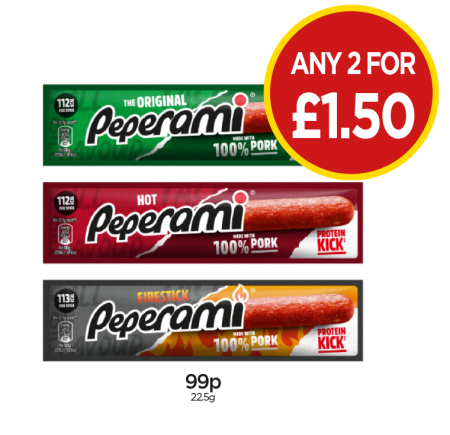 Peperami, Hot, Firestick - Any 2 for £1.50 at Budgens