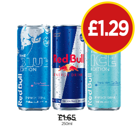 Red Bull, Blue Edition, Ice Edition - Now Only £1.29 at Budgens