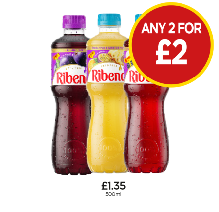 Ribena Blackcurrant, Pineapple & Passionfruit, Raspberry - Any 2 for £2 at Budgens