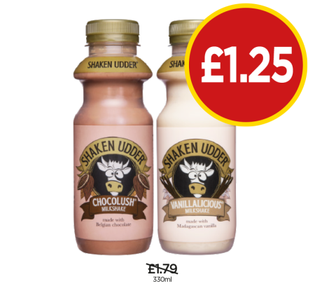 Shaken Udder Chocolush, Vanillalicious - Now Only £1.25 at Budgens
