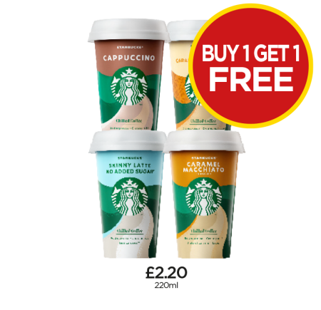 Starbucks Cappuccino, Caramel Macchiato, Oat, Skinny Latte No Sugars - Buy 1 Get 1 FREE at Budgens