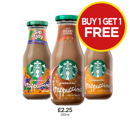 Starbucks Frappuccino Coffee, Caramel, Orange Brownie - Buy 1 Get 1 FREE at Budgens