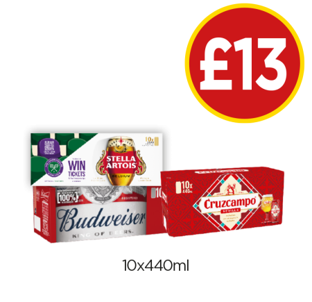 Stella Artois, Budweiser, Cruzcampo - Now Only £13 at Budgens