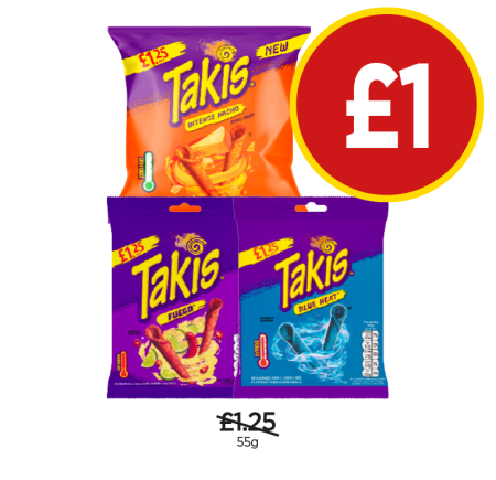 Takis Intense Mucho, Blue Heat, Fuego - Now Only £1 at Budgens