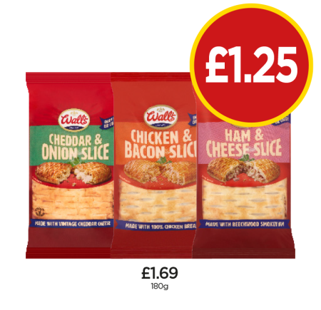 Walls Cheddar & Onion Slice, Chicken & Bacon Slice, Ham & Cheese Slice - Now Only £1.25 at Budgens