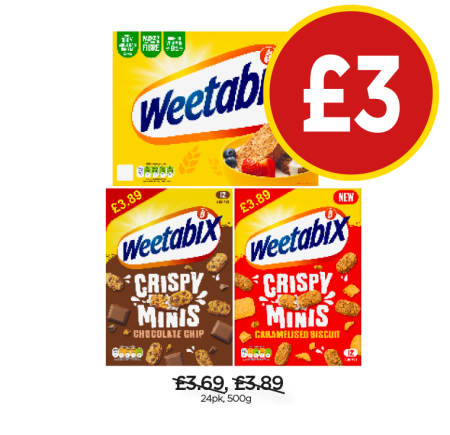 Weetabix, Crispy Minis Chocolate, Caramelised Biscuit - Now Only £3 at Budgens